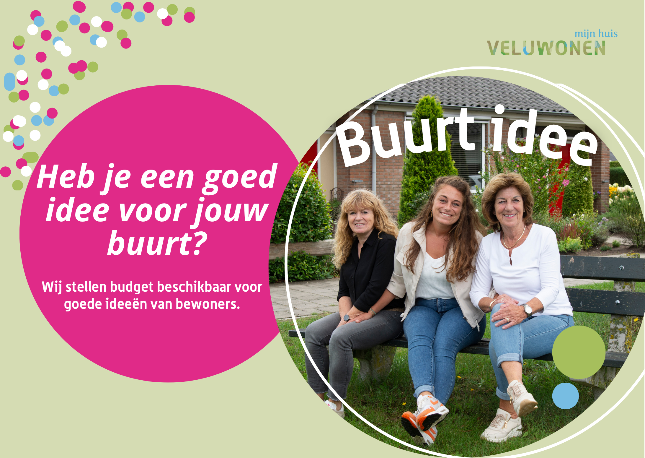 Veluwonen vindt het belangrijk dat bewoners prettig wonen in een fijne en leefbare buurt. Als bewoner weet je het beste wat hiervoor nodig is. Om dit te ondersteunen kunnen bewoners een bijdrage tot maximaal 350 euro per idee aanvragen om hun buurtidee uit te voeren.
